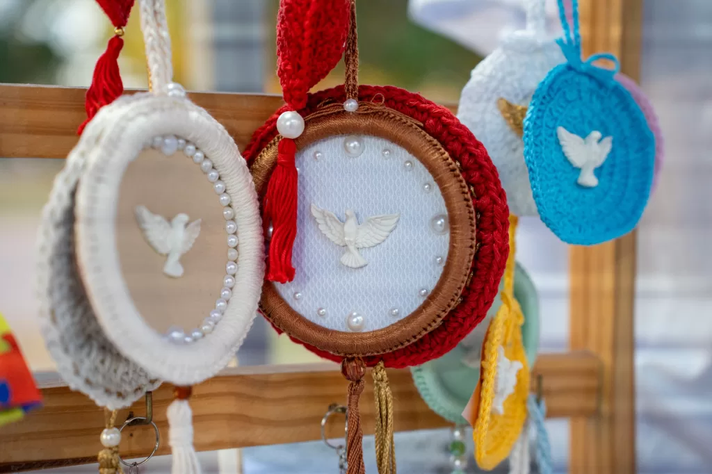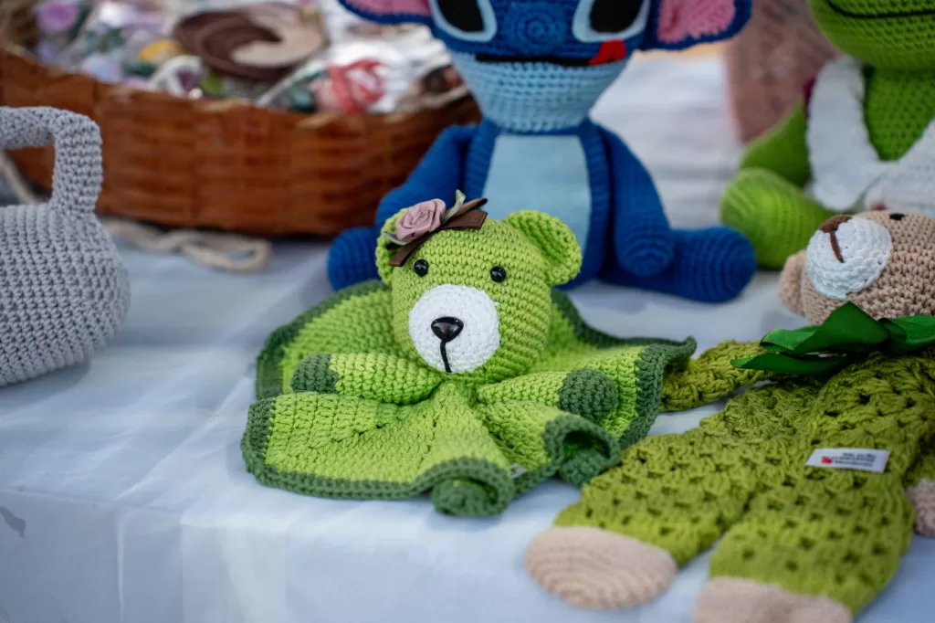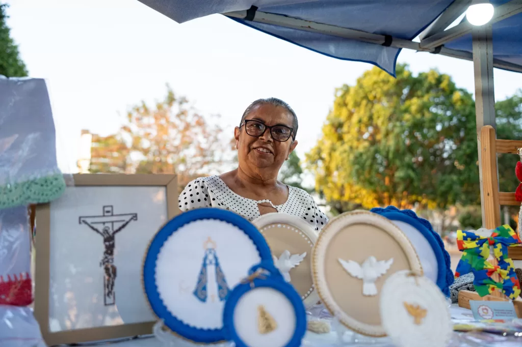 Entre as opções, estavam roupas, bolsas, tiaras, brincos e diversos acessórios produzidos em crochê, tricô, tricoline, seda, capim-dourado e outros materiais, além de comidas típicas preparadas com muito carinho.