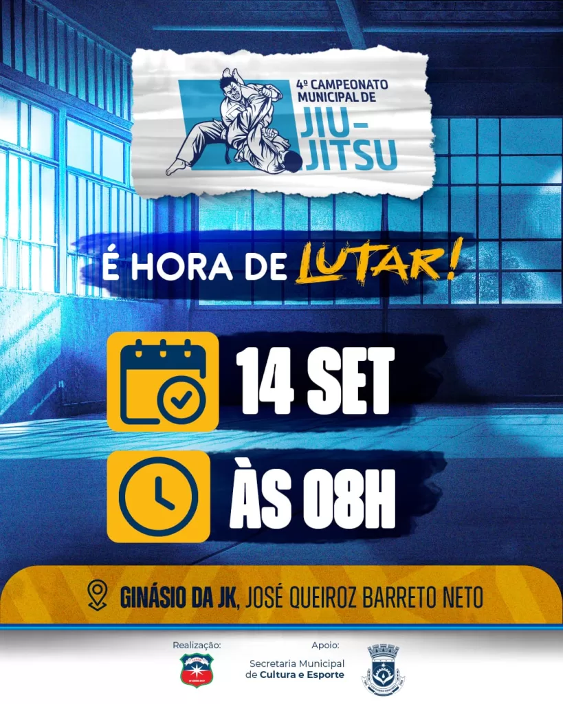 O esporte vai tomar conta de Luís Eduardo Magalhães neste domingo, 14 de setembro, com a realização do 4º Campeonato Municipal de Jiu-Jitsu. O evento acontece a partir das 8h da manhã, no Ginásio Poliesportivo José Queiroz Barreto Neto, reunindo atletas de diferentes idades e categorias.