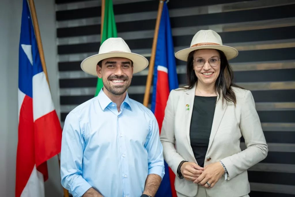 O prefeito de Luís Eduardo Magalhães, Junior Marabá e a secretária de Estado Parlamentar do Ministério da Agricultura, Alimentação e Identidade Regional da Alemanha, Sra. Martina Englhardt-Kopf