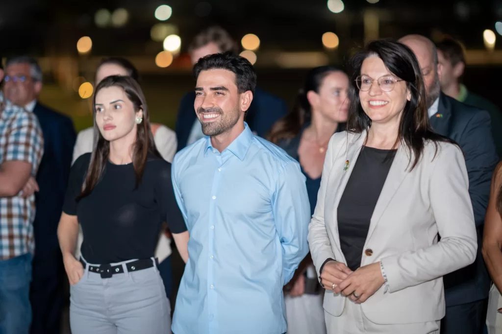 A primeira-dama de Luís Eduardo Magalhães e secretária da Cidadania, Cinthya Borges, o prefeito Junior Marabá e a secretária de Estado Parlamentar do Ministério da Agricultura Alimentação e Identidade Regional da Alemanha, Sra. Martina Englhardt-Kopf