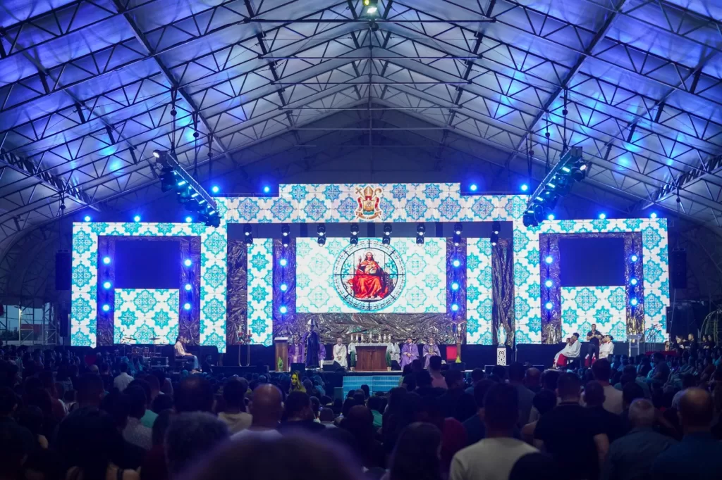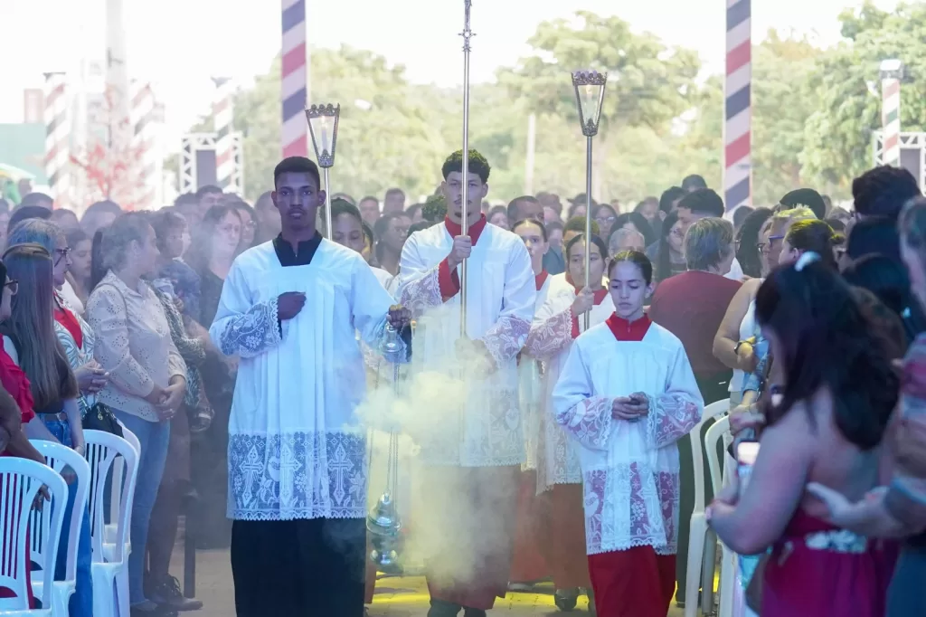 A programação do palco principal teve início com a Santa Missa, presidida pelo bispo Dom Moacir, proporcionando um momento de espiritualidade, reflexão e união para fiéis e visitantes.