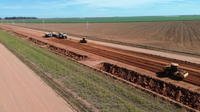 Na área de Infraestrutura, o avanço foi significativo com 130 km de asfalto executados, beneficiando a Linha Branca e a Linha Paraíso, 33 km de via asfaltada foram recuperados na Linha da Soja e 8 km de manutenção foram realizados na Linha dos Pivôs, fortalecendo a logística e a competitividade regional.