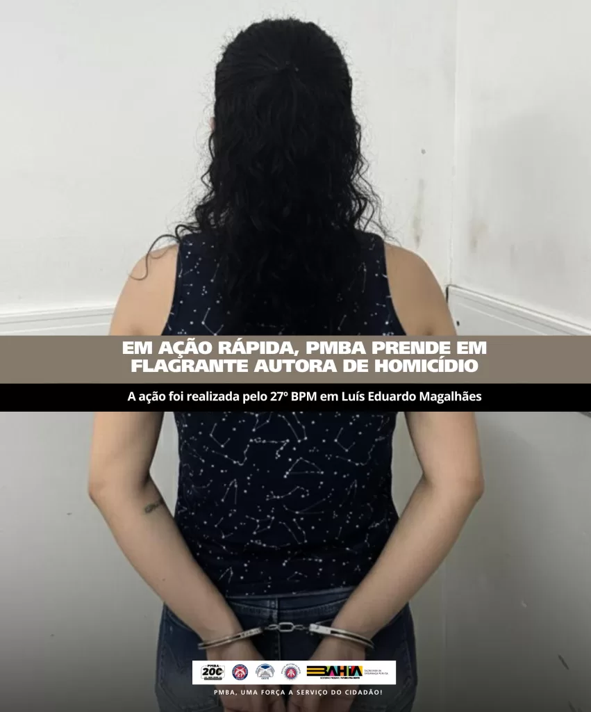 A mulher, de 29 anos, foi localizada, abordada e confessou o crime. Ela foi conduzida à Delegacia de Polícia de Luís Eduardo Magalhães, onde ficou à disposição da Justiça.