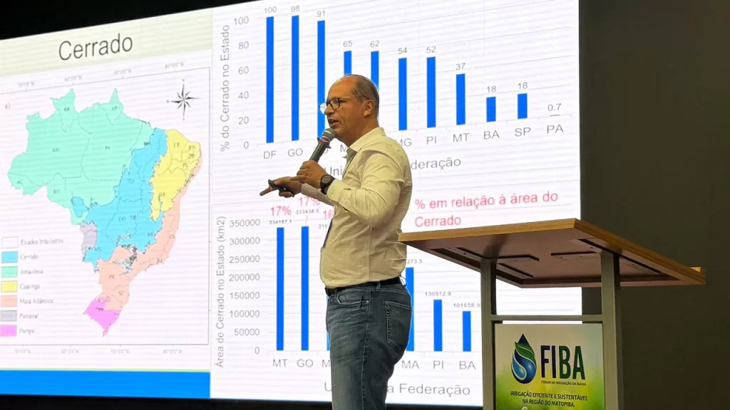 Um espaço de diálogo, troca de experiências e construção de soluções voltadas para uma irrigação mais eficiente e sustentável na região do MATOPIBA, marcou o Fórum de Irrigação da Bahia (FIBA), durante esta sexta-feira (28), em Luís Eduardo Magalhães. Organizado pela Associação de Agricultores e Irrigantes da Bahia (Aiba), conectou tecnologia, inovação e sustentabilidade no campo e debateu o futuro sustentável e competitivo para a agricultura brasileira.
