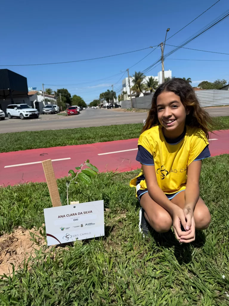 Durante a manhã, as crianças plantaram cerca de 40 mudas de árvores nativas do Cerrado, reforçando o compromisso da Prefeitura com a arborização urbana, a recuperação paisagística e a valorização ambiental dos espaços públicos.