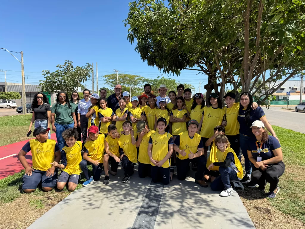 A atividade contou com a participação de 25 alunos dos 5º e 6º anos, que caminharam pelo Parque Linear da Avenida Salvador, observando as áreas de convivência, a pista de ciclismo e o espaço de caminhada até o local do plantio, realizado após o cruzamento com a Avenida JK.