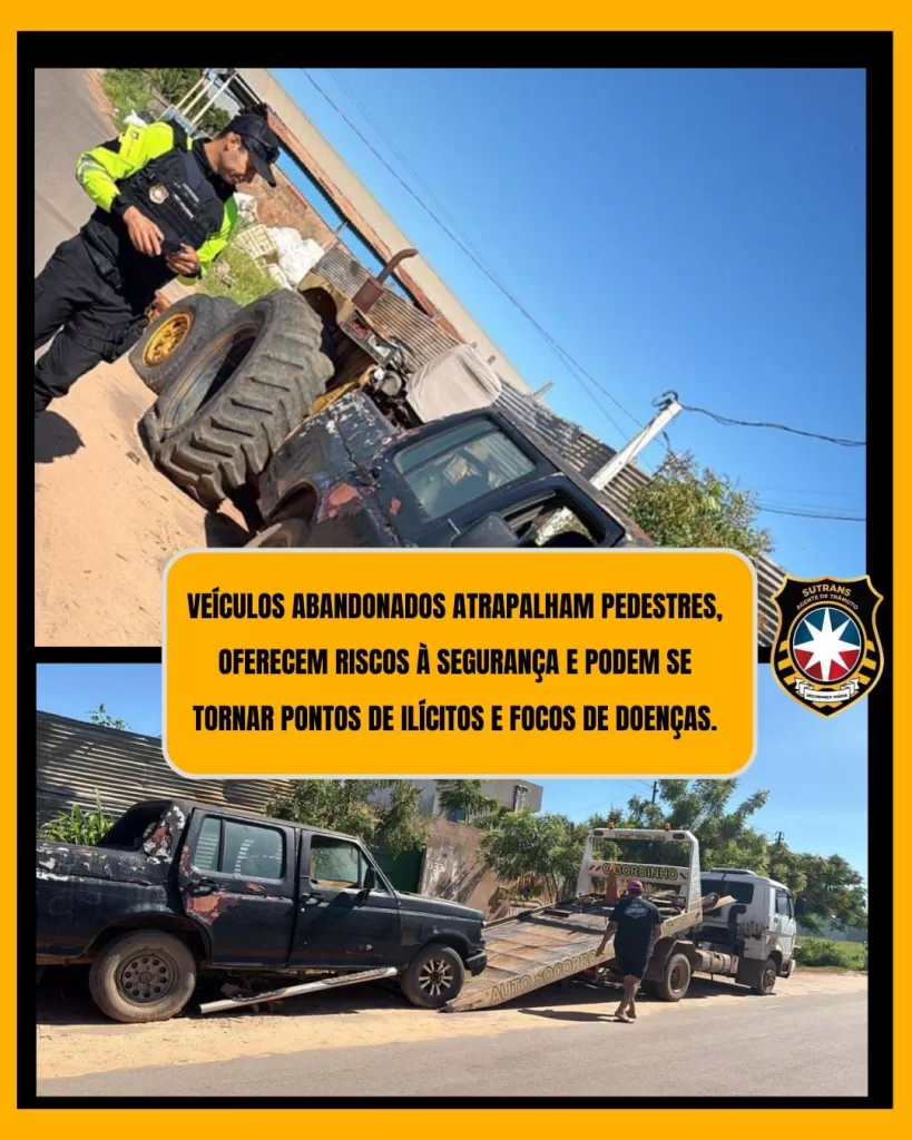 A Secretaria de Segurança e Trânsito, por meio da SUTRANS, está realizando fiscalização e notificando proprietários de veículos em estado de abandono (sucatas) deixados em vias públicas e calçadas.